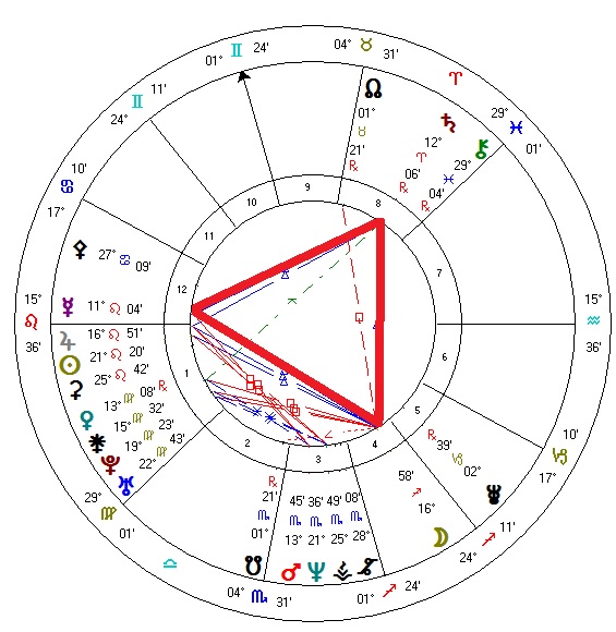 As trines are ‘soft’ aspects, and beneficial to the bearer, a Grand Trine intensifies that helpful energy. Grand Trines are all about luck and opportunity, effortless little gifts that fall into your lap when you’re least expecting it: talent that’s come by completely naturally; self-sufficiency that enables you to do what you like in life.